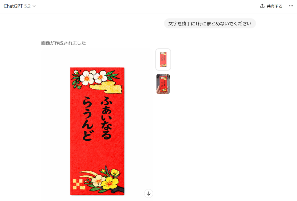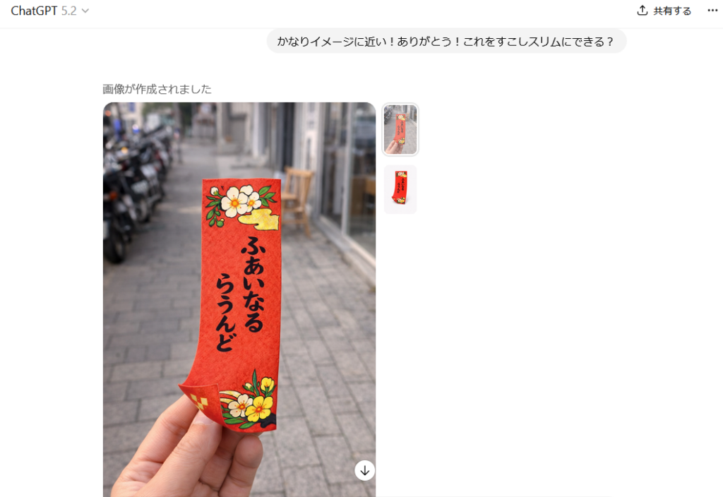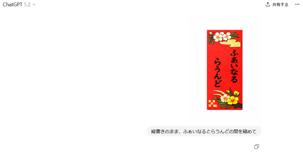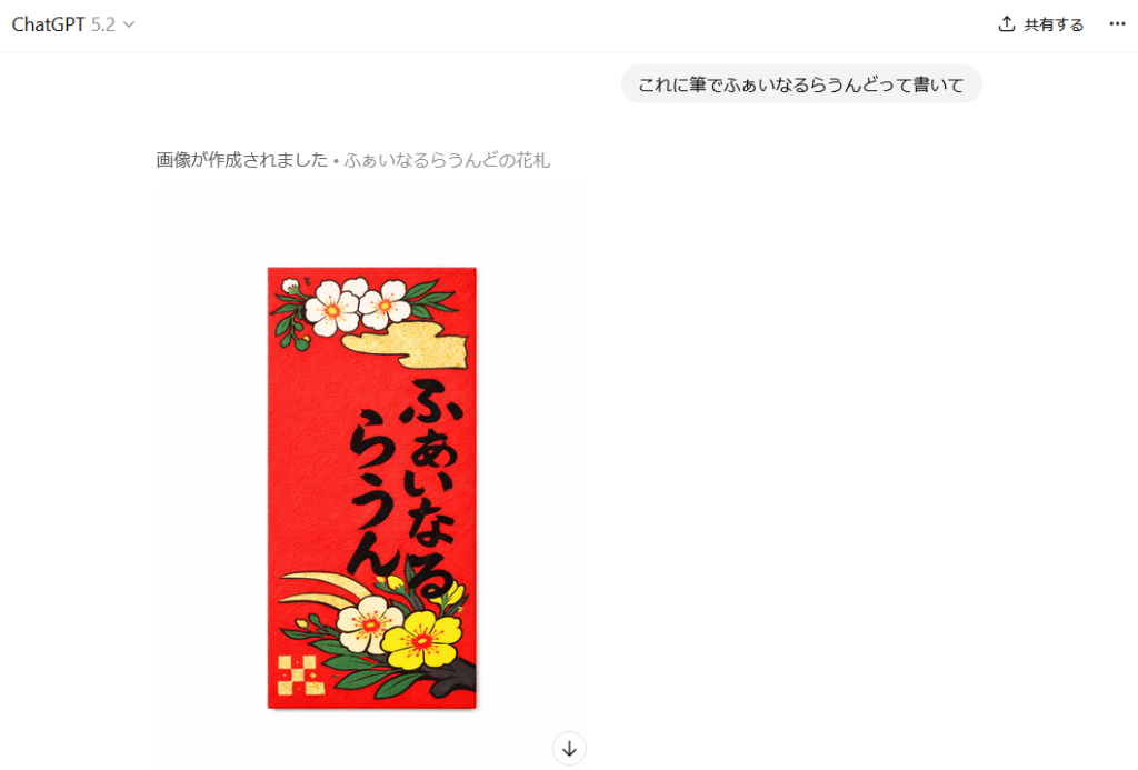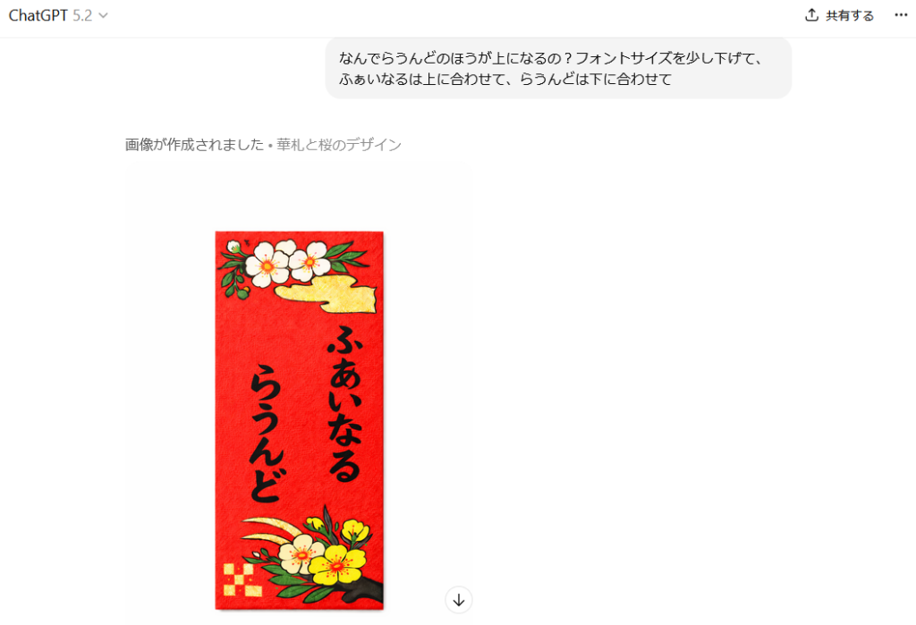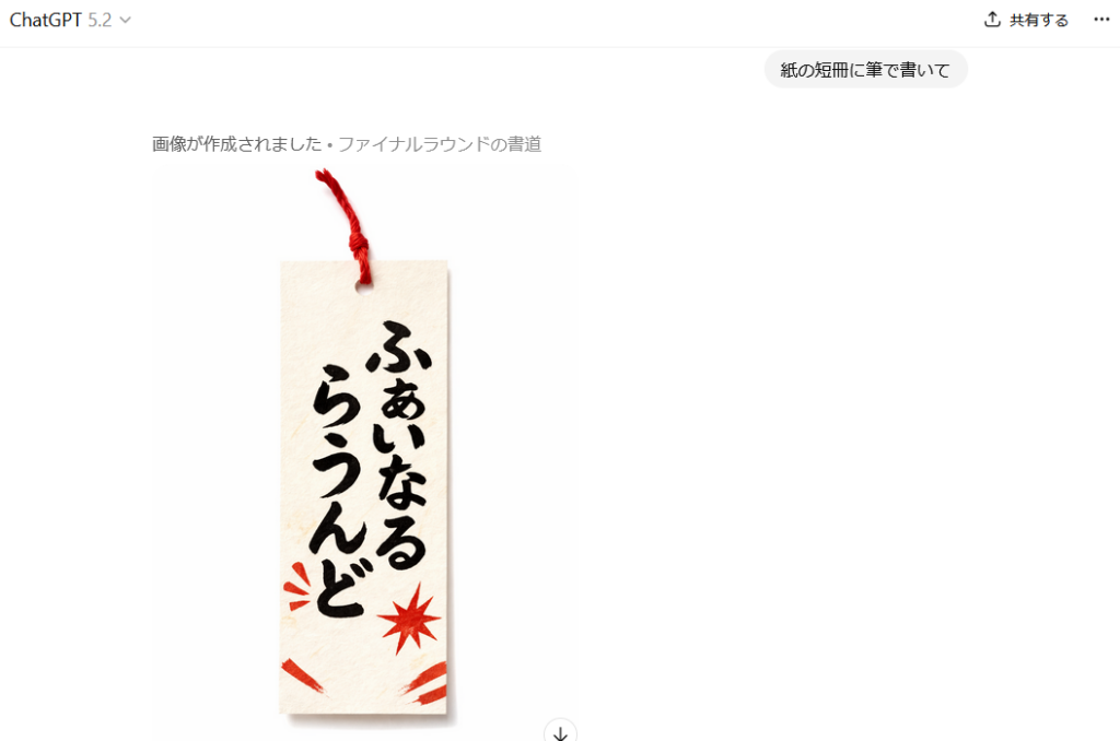 事の始まりはタイラバ釣行の流しの回数をサイドスーパー(テレビの右上とか左上に出る字幕などの情報)の素材をつくってもらったので、最終の流しに対して「ふぁいなるらうんど」と書かれた札を貼ってほしいなと思い依頼を開始。