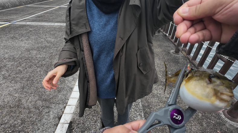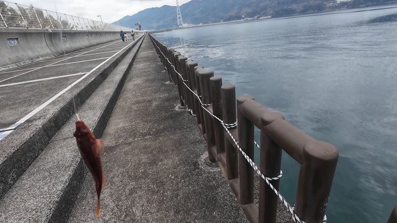 再度迷走に次ぐ迷走を繰り返してジグ単にしたり胴付きにしたりといろいろやってみましたがなかなか魚信を得られないまま時間が経過…。手前をさぐったり沖にチョイ投げしたりといろいろと試したところ突然くくんっとあたりが!この引きは今日一サイズだ!やったぁああああぁぁああ・・・あれっ!?